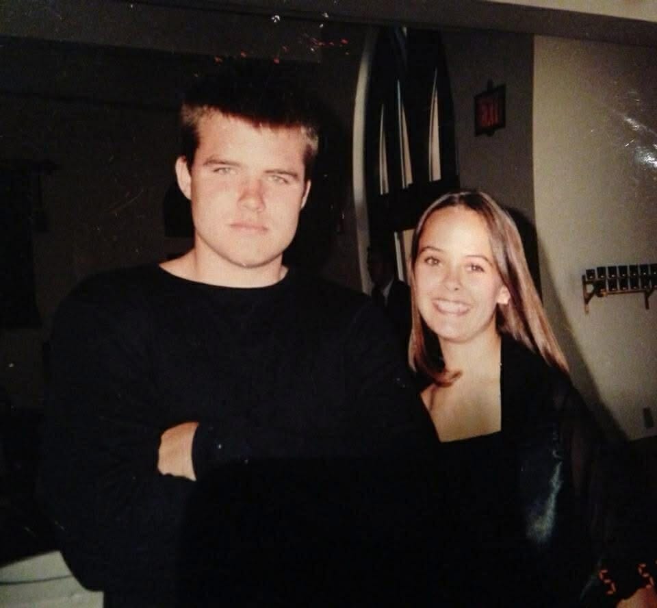 This picture was taken after five years of dating, and about a year before we got married. Also, it was taken in the early 00's, so it's a picture of a picture. Don't judge the quality.