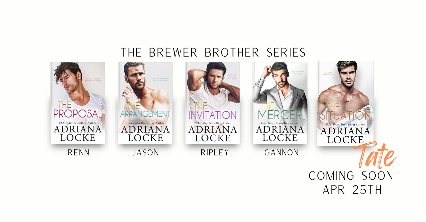 I’m putting the final touches on THE SITUATION, the last book in my Brewer Family Series. Tate Brewer is about to steal your freaking heart, y’all!